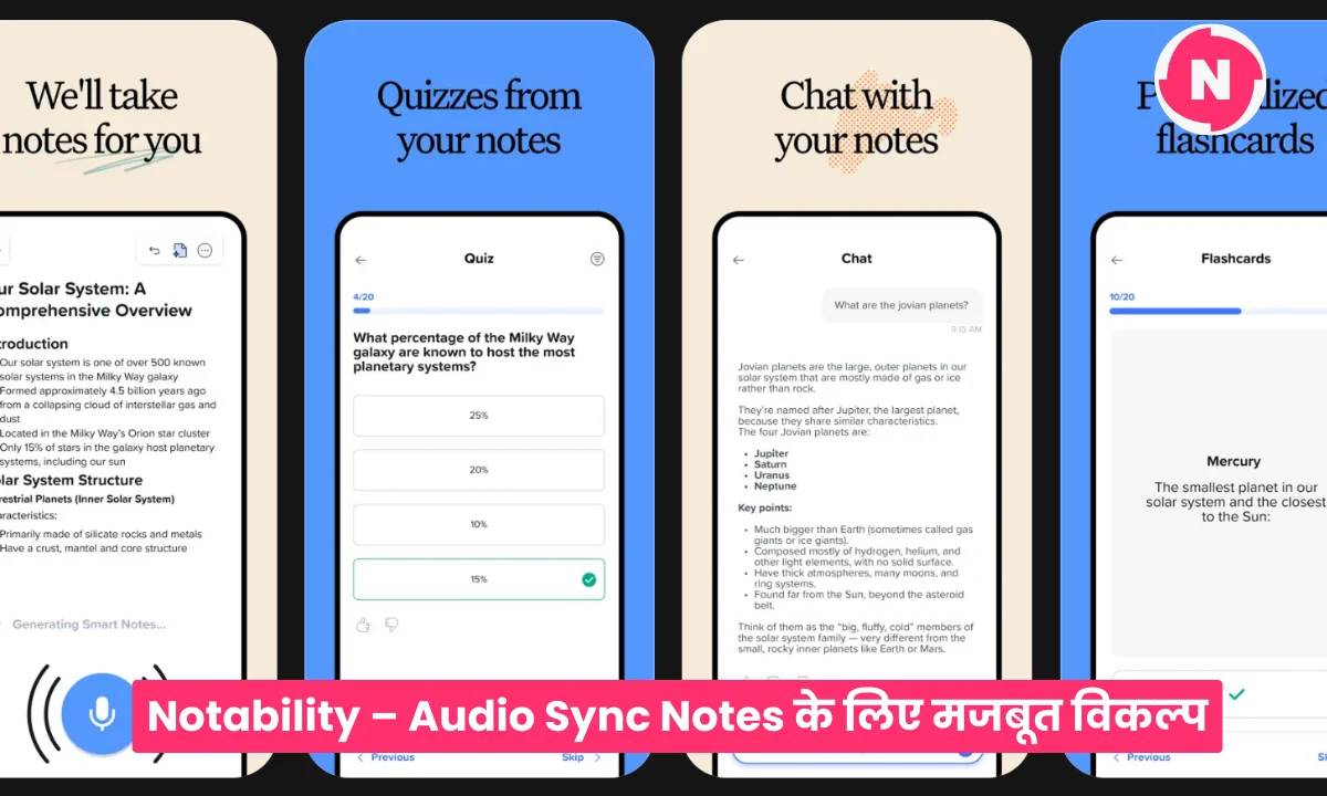 Notability उन स्टूडेंट्स के लिए अच्छा है जो लेक्चर के दौरान ऑडियो रिकॉर्ड करना चाहते हैं और बाद में उसी के साथ नोट्स रिव्यू करना चाहते हैं।
